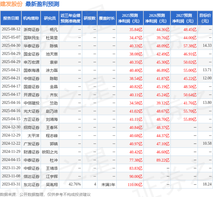证券之星数据中心根据近三年发布的研报数据计算,东北证券吴胤翔研究员团队对该股研究较为深入,近三年预测准确度均值为42.76%,其预测2025年度归属净利润为盈利110.06亿,根据现价换算的预测PE为3.18。